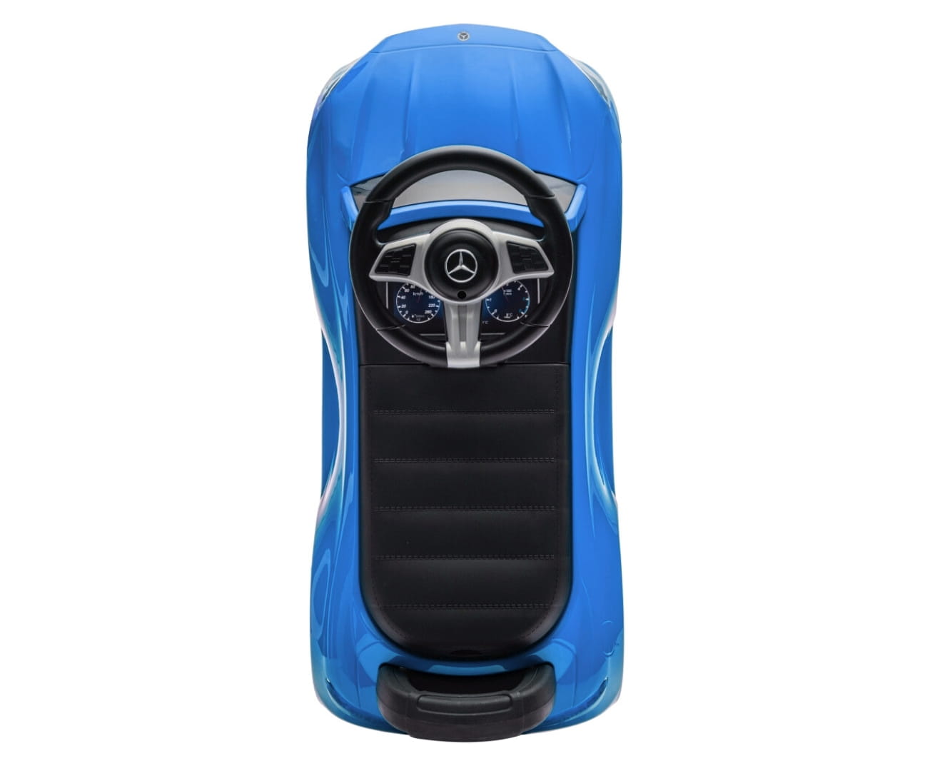 Realistyczna trójramienna kierownica z logiem Mercedesa wyposażona jest w klakson oraz dźwięk uruchamianego silnika, dzięki czemu zabawa staje się jeszcze bardziej ekscytująca. Dziecko może poczuć się, jak w prawdziwym aucie – ucząc się przy tym orientacji przestrzennej i podstaw manewrowania.