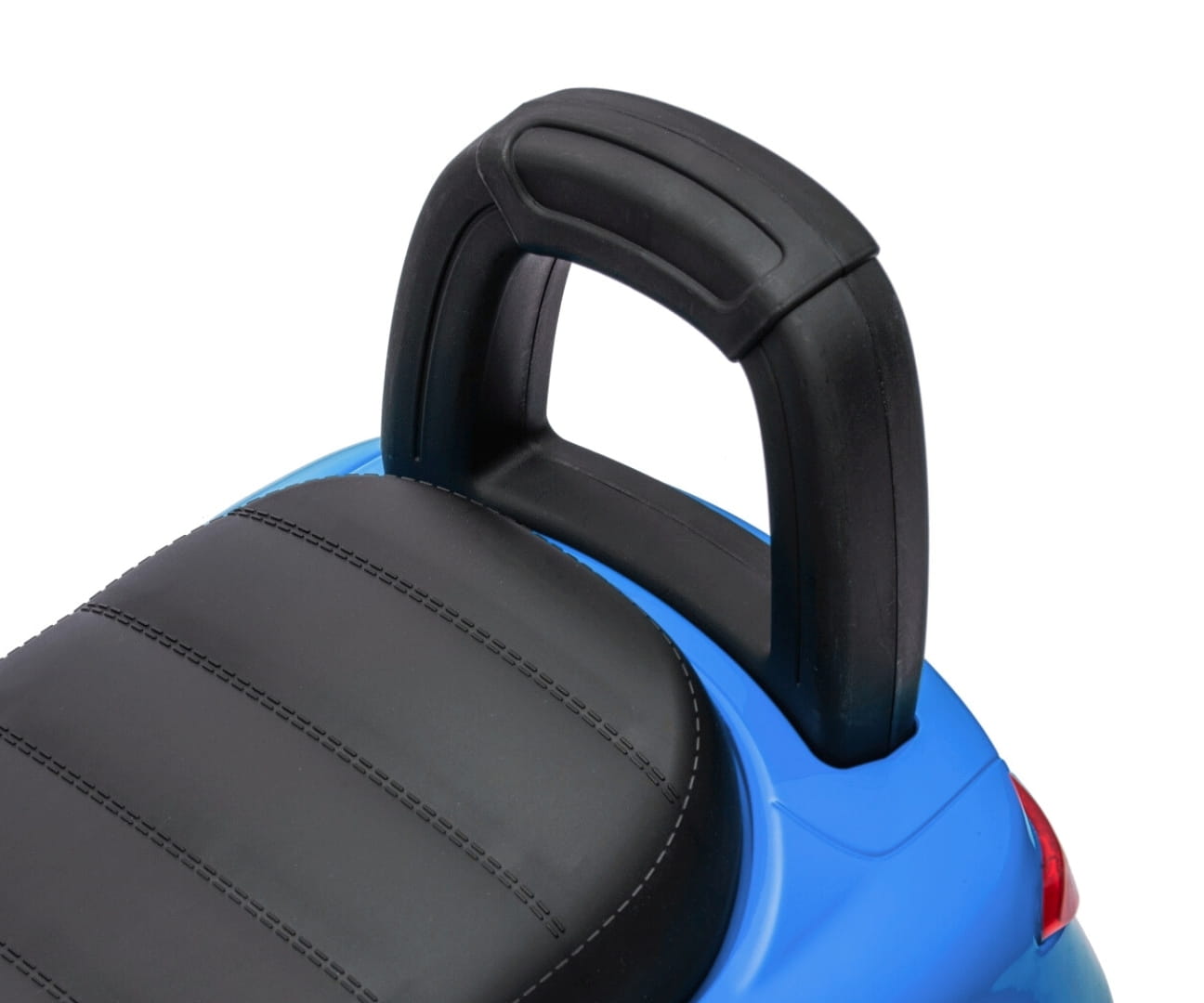 Eleganckie siedzisko z oparciem i wzorem imitującym pikowaną skórę zapewnia wygodę, a zabezpieczenie przed wywróceniem daje rodzicom spokój o bezpieczeństwo dziecka. Dodatkowym atutem jest schowek pod siedzeniem, w którym mały kierowca może przechowywać swoje skarby lub ulubione zabawki.